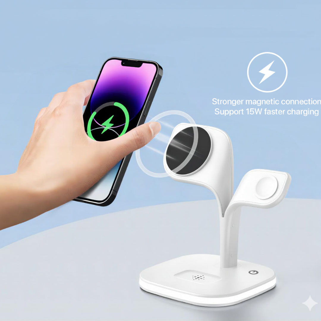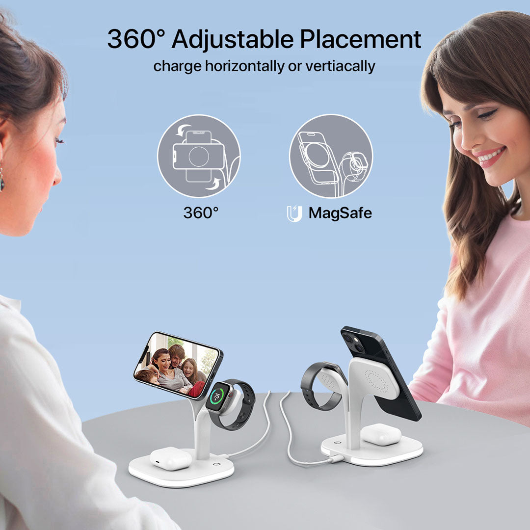 Simply place your compatible devices onto the magnetic charging pads, and the station instantly begins delivering optimized power. The built-in intelligent chip automatically adjusts to each device’s requirements, preventing overcharging or overheating for safe, efficient use.